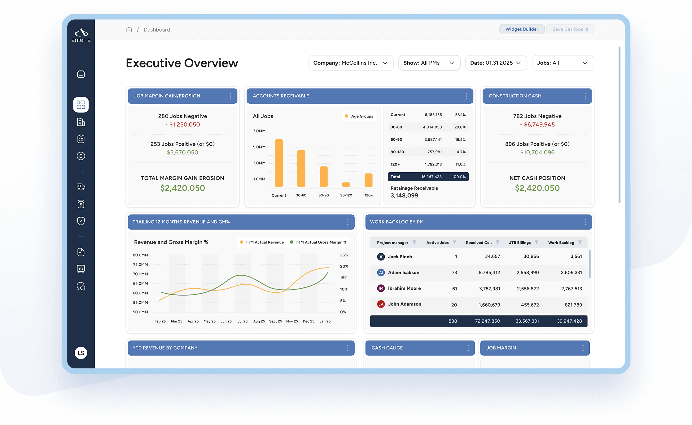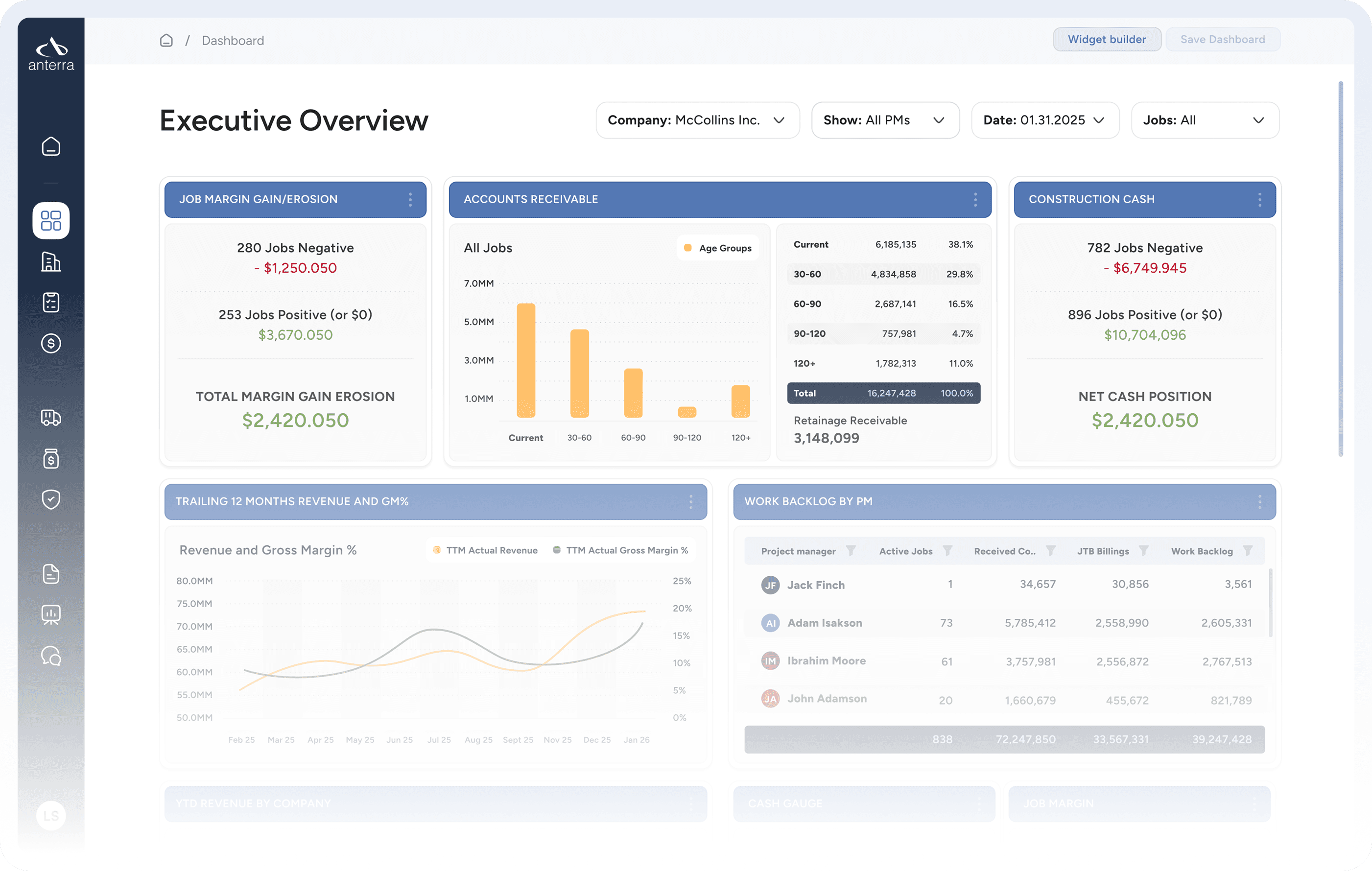 Anterra provides systematic financial control for construction companies, reducing manual work and increasing confidence without replacing your core ERP.