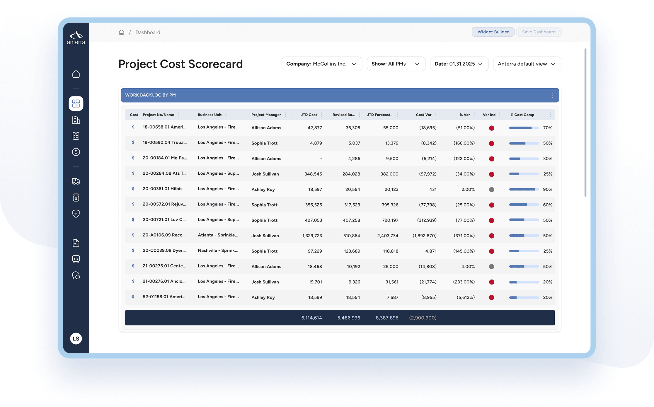 Clear, visual understanding of portfolio and project-level financial performance.